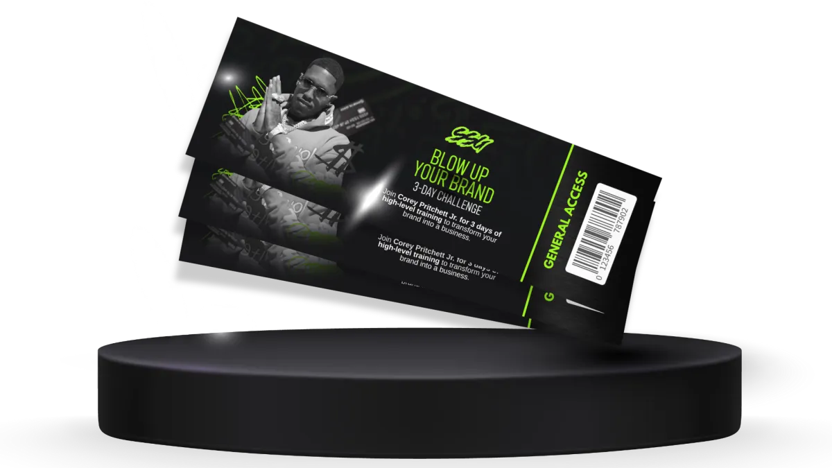 Join Corey Pritchett Jr. for 3 days of high-level training to transform your brand into a business.
